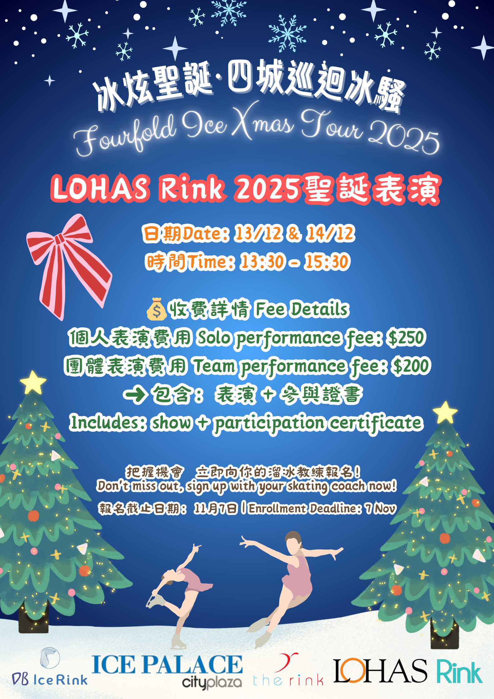 In addition to the performances by the LOHAS students, there is a big surprise this year - we have also teamed up with three other ice skating rinks in Hong Kong, namely DB Ice Rink, Cityplaza Ice Palace, and The Rink, to hold a wonderful touring performance! ✨
